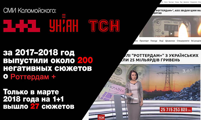 «Только с января 2017 года по июль 2018-го Роттердам + критиковался в ТСН.ua 27 раз, в ленте УНИАН — 62 раза, в эфирах „1+1“ — 71 раз. Рекорд поставлен „плюсами“ в марте 2018-го — целых 27 сюжетов!».