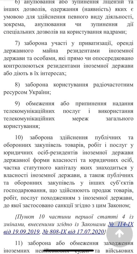 — 10 пункт — запрет пользования радиочастотным ресурсом Украины;