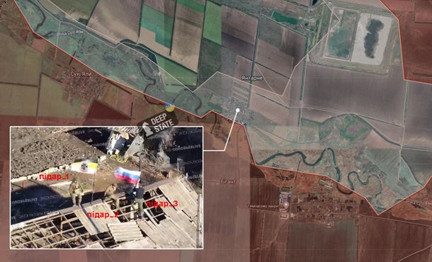 «Появились кадры из центра Янтарного, где 3 кацапы поднимают свои тряпки. Примечательно, что уроды без средств индивидуальной защиты, что свидетельствует об отсутствии активных боевых действий рядом. Ситуация по селу уточняется — действительно ли враг его оккупировал», — сообщили в DeepState.