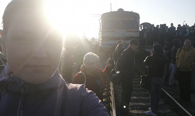 «Поймите, нас задолбало. Жители Троещины заблокировали ж/д пути с требованием добавить вагоны к утреннем составу городской электрички», — написала Мария Витязь и выложила фото перекрытых путей.