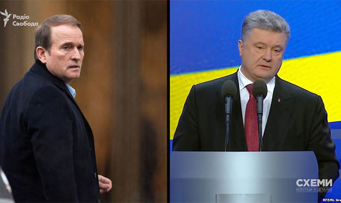 Лидер организации «Украинский выбор — право народа» регулярно ездит на Банковую в администрацию президента Украины Петра Порошенко, говорится в расследовании программы «Схемы: коррупция в деталях». Кроме того, журналисты зафиксировали неафишируемый визит Медведчука в частный дом президента в Козине.