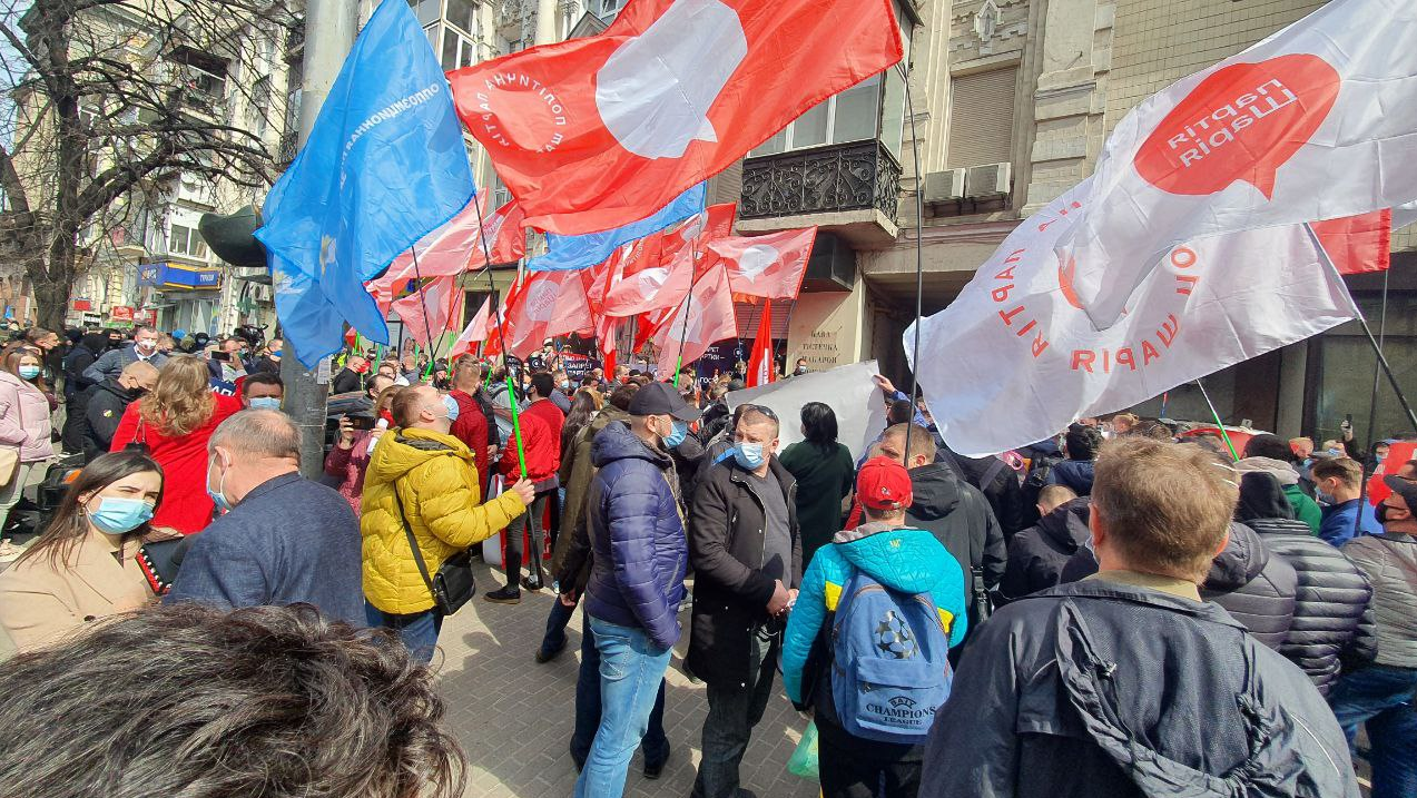 «Если мы сейчас все вместе не отстоим всю эту историю с политической партией Анатолия Шария и не отстоим историю с закрытием телеканалов — то очень скоро у нас останется одна партия „Слуга Народа“, останется какая-то маленькая удобная оппозиционная партия, которую они создадут и останется один телеканал, по которому постоянно и круглосуточно будут крутить концерты „95 Квартала“ и сериал „Слуга Народа“. Поэтому нам сейчас нужно всем вместе объединяться и отстаивать права наших граждан на свободный выбор, свободный выбор медиа, которое они смотрят и свободный выбор политической силы, которую они поддерживают. Мы приняли решение, что должны поддержать наших коллег — „Партия Шария“ и поскольку действуют карантинные ограничения, мы придумали такую методологию, что можем их поддержать не выходя из наших автомобилей, то есть не нарушая ни один из пунктов действующего законодательства и ограничений. Мы собрали около 50 автомобилей, проехали колонной по городу с флагами, сигналили, нас очень хорошо здесь принимали и сейчас мы частично вышли, для того чтобы выступить и высказать свою поддержку», — заявил Артем Марчевский.