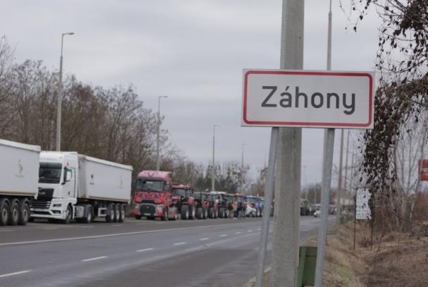 Техника фермеров растянулась на сотни метров вблизи венгерско-украинской границы // Фото: SZON.HU