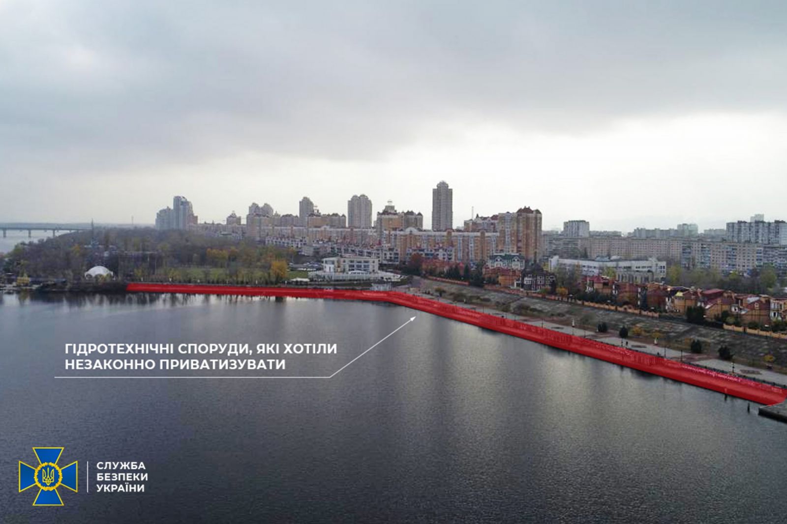 «В настоящее время наложен арест на имущество и имущественные права 12 земельных участков и гидротехнических сооружений общей стоимостью более 4,2 млрд грн, которые расположены в Оболонском, Подольском, Деснянском районах Киева и Обуховском и Вышгородском районах Киевской области», — говорится в заявлении пресс-службы СБУ.