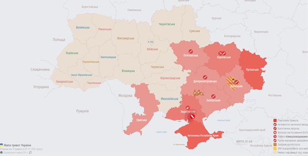Воздушная тревога из-за баллистики объявлена в Полтавской, Харьковской, Днепропетровской, Донецкой и Запорожской областях.