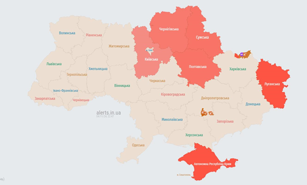 В настоящее время воздушная тревога объявлена ​​в Черниговской, Сумской, Полтавской и Киевской областях.