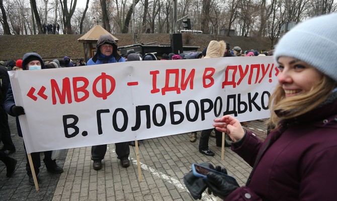 Несколько тысяч человек протестуют в центре столицы против сотрудничества Украины с МВФ. Митингующие расположились под Кабмином и Верховной Радой, заявляя, что под давлением Фонда власть принимает антисоциальные законы, уничтожающие рабочие места и малое предпринимательство, делающие невыносимой жизнь малоимущих и пенсионеров.