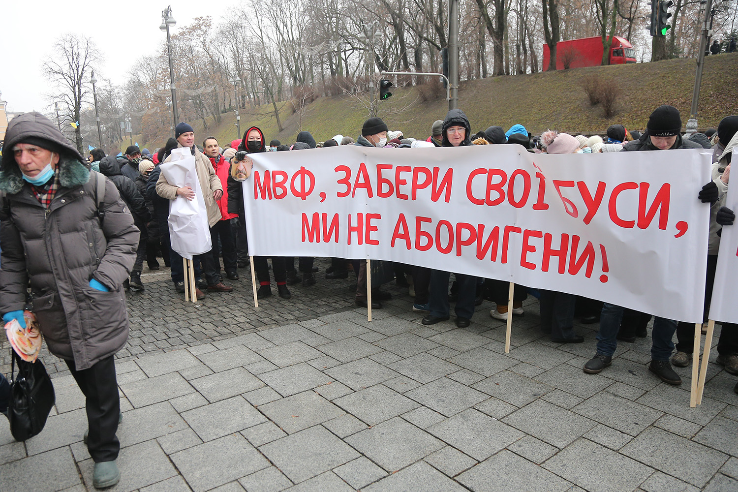 Несколько тысяч человек протестуют в центре столицы против сотрудничества Украины с МВФ. Митингующие расположились под Кабмином и Верховной Радой, заявляя, что под давлением Фонда власть принимает антисоциальные законы, уничтожающие рабочие места и малое предпринимательство, делающие невыносимой жизнь малоимущих и пенсионеров.