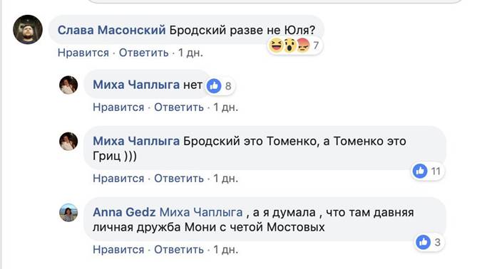 В комментариях у Чаплыги спросили, поддерживает ли Михаил Бродский Юлию Тимошенко, на что тот ответил: «Бродский — это Томенко. А Томенко — это Гриценко».