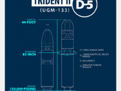 Технічно Trident II D5 — це триступенева твердопаливна балістична ракета підводного базування з дальністю понад 7 000 км (залежно від конфігурації бойового навантаження). Вона може нести кілька ядерних боєзарядів за схемою MIRV — з незалежним наведенням бойових блоків на різні цілі. Система наведення поєднує інерціальну навігацію з астрокорекцією під час активної ділянки польоту; у відкритих оцінках фігурує кругове імовірне відхилення близько 90 м.