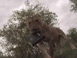 Когда львица поняла, что камера ей не навредит, она схватила ее зубами и бросилась бежать. Команда решила ехать машиной за ней, надеясь, что животное испугается и бросит оборудование. Однако казалось, что это только вызвало азарт у хищницы, ведь она крепче вцепилась в камеру и ускорила бег.